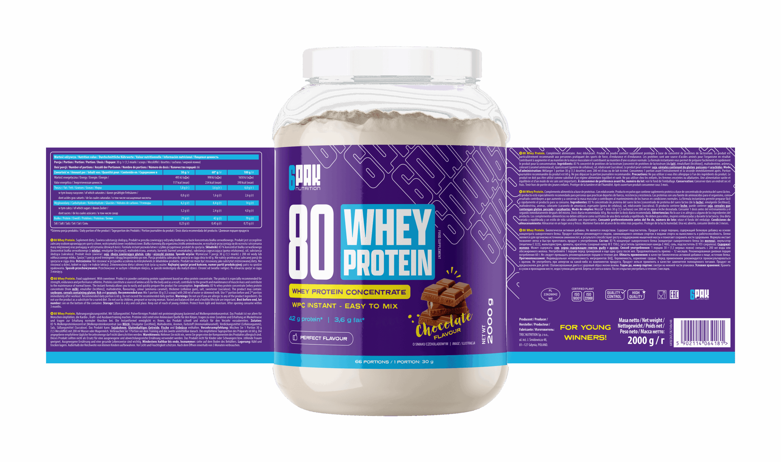 6PAK 80 WHEY PROTEIN 2000g JAR CHOCOLATE