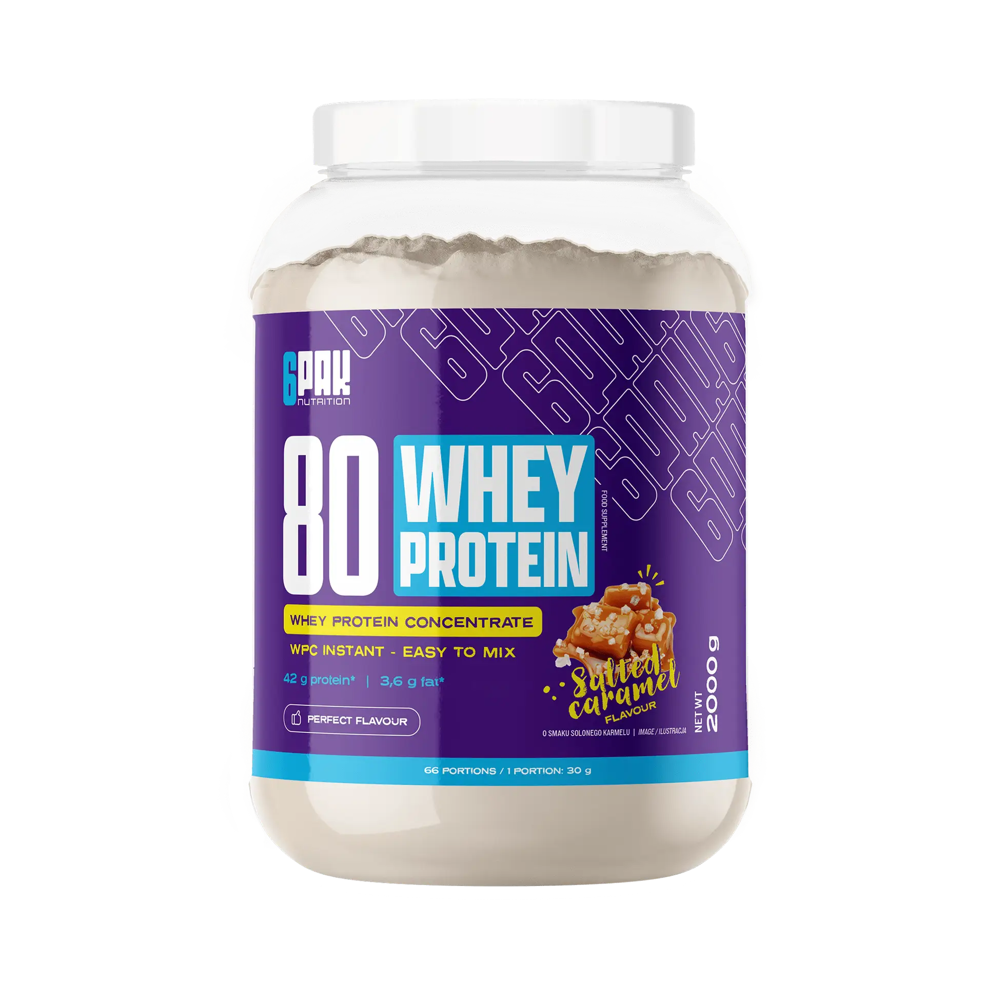 6PAK 80 WHEY PROTEIN 2000g JAR SALTED CARAMEL