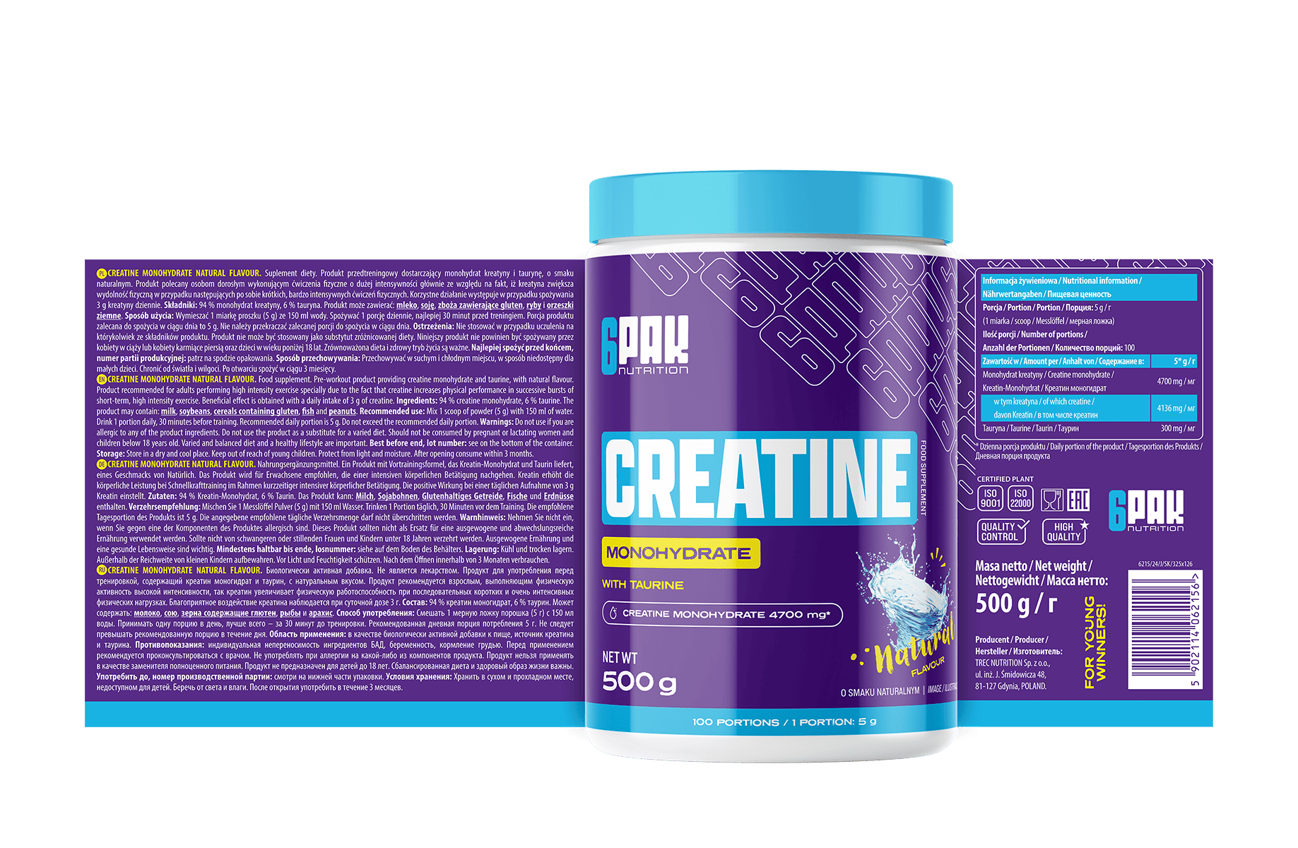 Składniki: 94% monohydrat kreatyny, 6 % tauryna.