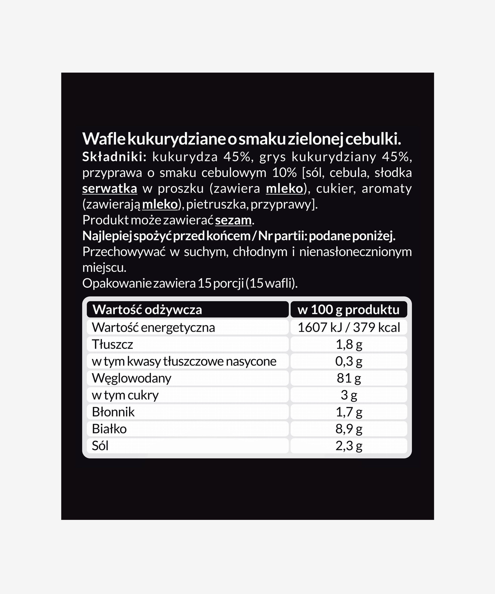 - Gramatura opakowania: 120 g (15 sztuk)