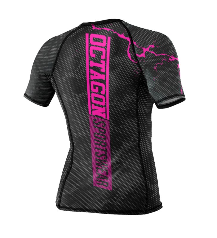 Rashguard Damski Octagon PREMIUM Marble Camo Black/Pink to profesjonalna odzież sportowa stworzona dla kobiet trenujących sporty walki, fitness, siłownię oraz crossfit. Dynamiczny design w odcieniach czerni i różu z motywem Marble Camo sprawia, że wyróżnisz się nie tylko umiejętnościami, ale również stylem.
