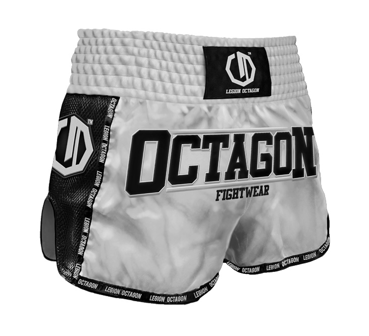 Spodenki Kickboxing/Muay Thai Legion Octagon Future PREMIUM silver to profesjonalna odzież sportowa stworzona z myślą o intensywnym treningu i walkach w ringu. Wyróżniają się nowoczesnym srebrnym kolorem, który łączy w sobie styl, dynamikę i charakter. To idealny wybór dla osób trenujących Muay Thai, kickboxing, K-1 oraz inne sporty uderzane.