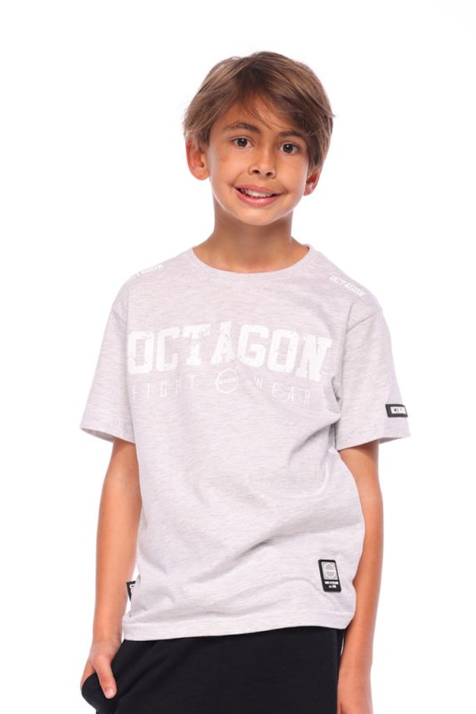 T-shirt dziecięcy Octagon Fight Wear grey to klasyczna propozycja dla młodych fanów sportów walki oraz miejskiego stylu. Wykonany z wysokogatunkowej, 100% bawełny, zapewnia maksymalny komfort i swobodę ruchu. Szary kolor w połączeniu z charakterystycznym nadrukiem Octagon Fight Wear nadaje koszulce sportowego charakteru i wyjątkowego wyglądu.