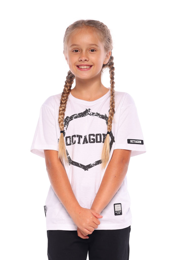 T-shirt dziecięcy Octagon Logo Smash white to idealna propozycja dla najmłodszych fanów marki OCTAGON oraz młodzieżowego stylu streetwear. Klasyczna biała koszulka z dynamicznym nadrukiem Logo Smash przyciąga wzrok i dodaje charakteru każdej dziecięcej stylizacji. Wykonana z wysokiej jakości bawełny, zapewnia komfort noszenia nawet przy intensywnym użytkowaniu – doskonała zarówno do szkoły, jak i na trening czy spacer.